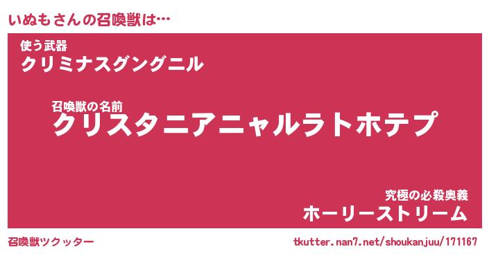 | 伝説のあだ名 | 『封印されしスナイパーいぬも』 |