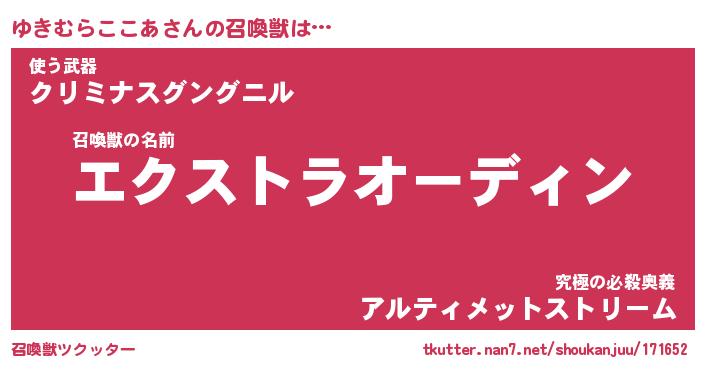 | 女子向けラノベタイトル風あだ名 | 『(仮)ゆきむらここあのやんごとなき事情』 |