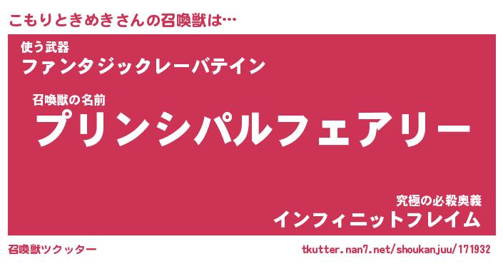 | 女子向けラノベタイトル風あだ名 | 『こもりときめき姫と円卓の騎士』 |