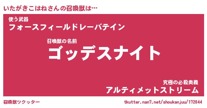 | 女子向けラノベタイトル風あだ名 | 『いたがきこはね姫と円卓の騎士』 |
