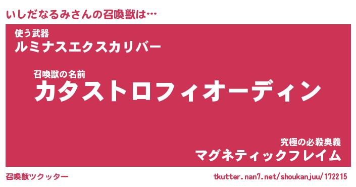 | ヒーロー風カッコイイあだ名 | 『スーパーイシダナルミ』『幻影騎士イシ』 |