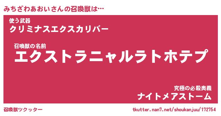 | 伝説のあだ名 | 『伝説のスナイパーみちざわあおい』 |