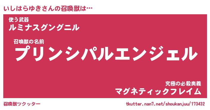 | ヒーロー風カッコイイあだ名 | 『スーパーイシハラユキ』『幻影騎士イシ』 |