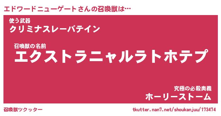 | ツイッター | エドワードニューゲートさんのツイッターID『konnyaku_nyan』 |