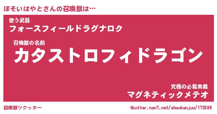 | 伝説のあだ名 | 『封印されし竜騎士ほそいはやと』 |