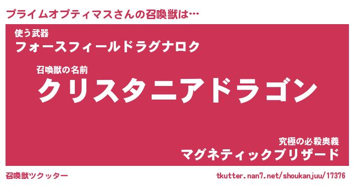 | 伝説のあだ名 | 『封印されし竜騎士プライムオプティマス』 |
