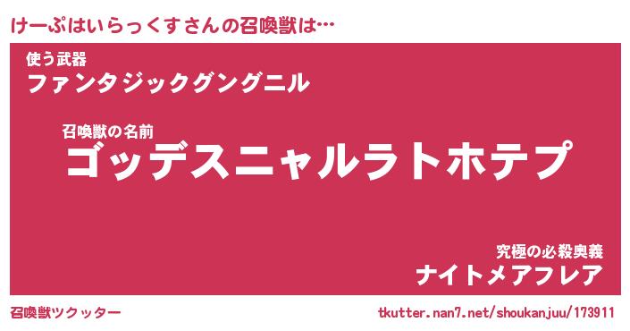 | 胡散臭い通販商品みたいなあだ名 | 『モテモテ間違いなし霊験あらたかなお札…その名も「けーぷはいらっくす」』 |