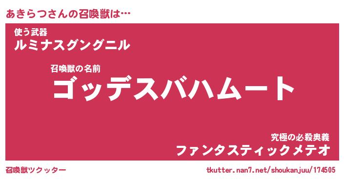 | ファンタジー風あだ名 | 『アキフェル』『エターナルアキラツー』 |