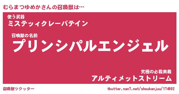 | 恥ずかしいあだ名 | 『プリティーむらまつゆめか』『むらちん』 |