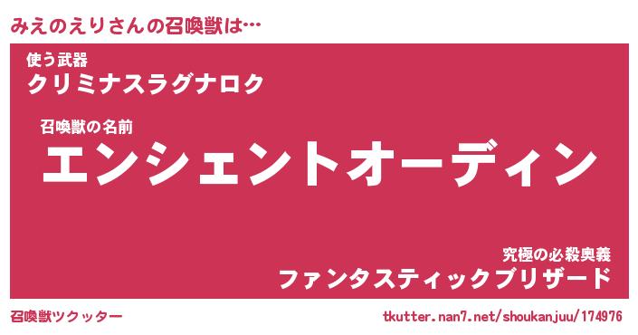| ヒーロー風カッコイイあだ名 | 『スーパーミエノエリ』『天弓騎士ミエ』 |