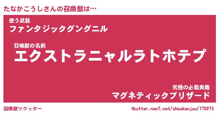 | ポケモン風あだ名 | 『タナチュウ』『タナカダネ』 |