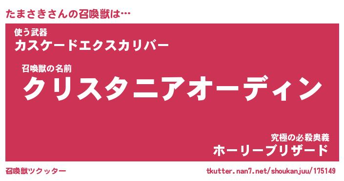 | ファンタジー風あだ名 | 『タマフェル』『エターナルタマサキー』 |