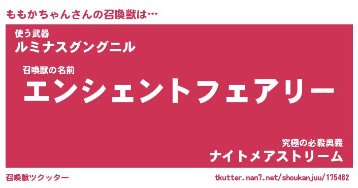 | ヒーロー風カッコイイあだ名 | 『スーパーモモカチャン』『天弓騎士モモ』 |