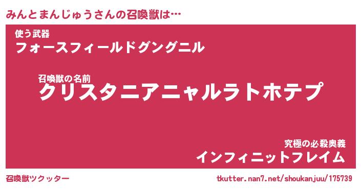 | 伝説のあだ名 | 『封印されしスナイパーみんとまんじゅう』 |