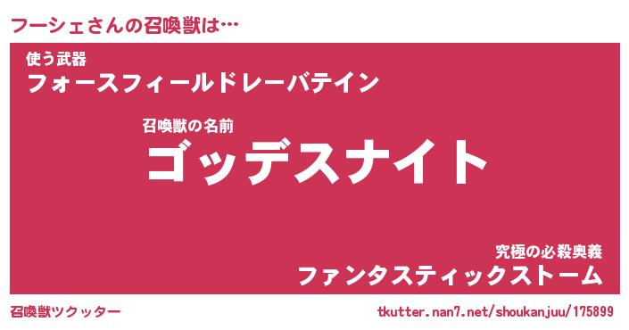 | ヒーロー風カッコイイあだ名 | 『スーパーフーシェ』『天弓騎士フー』 |