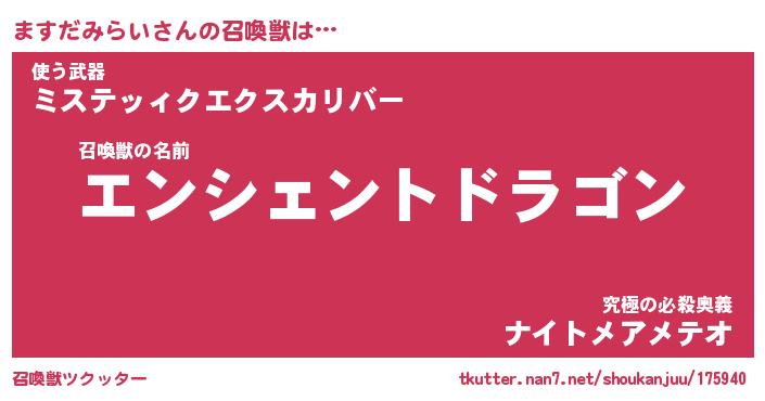 | ファンタジー風あだ名 | 『マスフェル』『ファントムマスス』 |