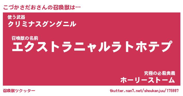 | ファンタジー風あだ名 | 『コヅフェル』『ファントムコヅス』 |