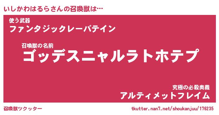 | 胡散臭い通販商品みたいなあだ名 | 『モテモテ間違いなし霊験あらたかなお札…その名も「いしかわはるら」』 |