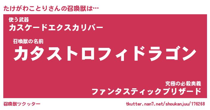 | 伝説のあだ名 | 『封印されし竜騎士たけがわことり』 |