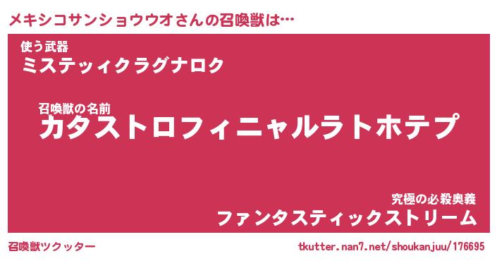 | 料理風あだ名 | 『ネギたっぷりメキシコサンショウウオの南蛮漬け』 |