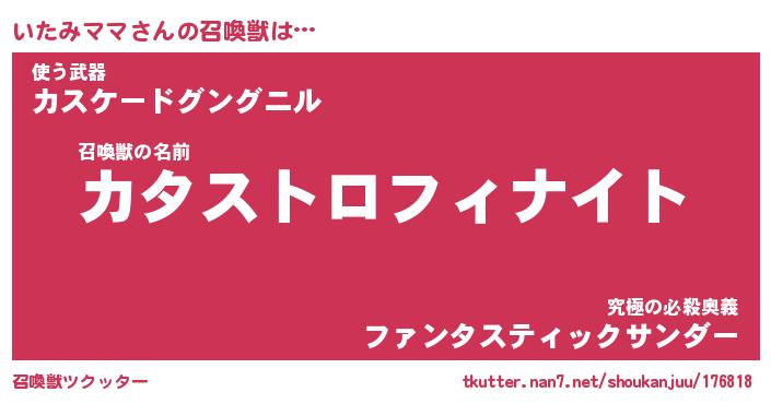 | 男性向けラノベタイトル風あだ名 | 『イタミママアートオンライン』 |