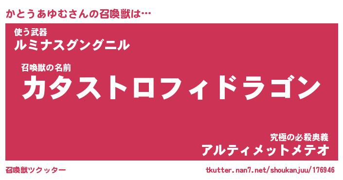 | 男性向けラノベタイトル風あだ名 | 『カトウアユムアートオンライン』 |