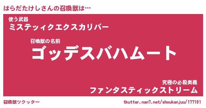 | 女子向けラノベタイトル風あだ名 | 『はらだたけし姫と円卓の騎士』 |