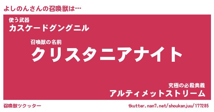 | ファンタジー風あだ名 | 『ヨシフェル』『エターナルヨシノンー』 |