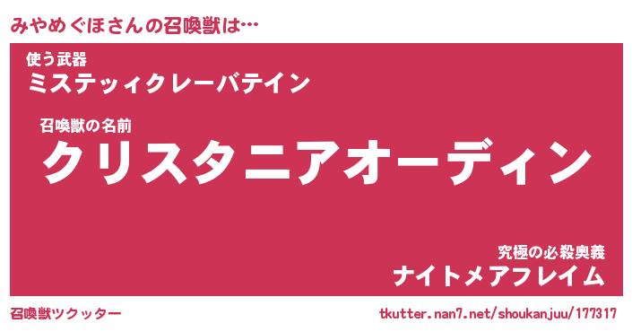 | ファンタジー風あだ名 | 『ミヤフェル』『エターナルミヤメグホー』 |