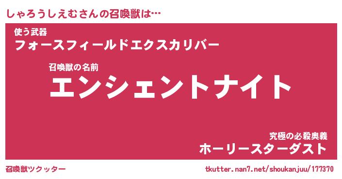 | 伝説のあだ名 | 『伝説のスナイパーしゃろうしえむ』 |