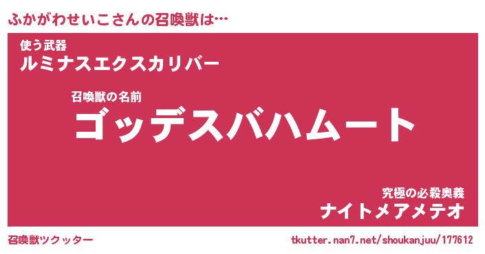| 女子向けラノベタイトル風あだ名 | 『ふかがわせいこ姫と円卓の騎士』 |