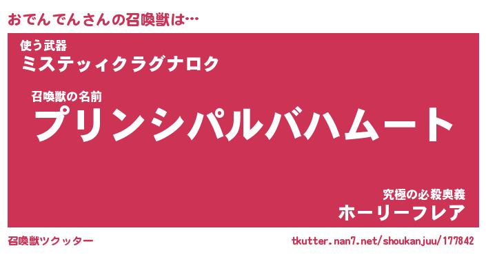 | 女子向けラノベタイトル風あだ名 | 『おでんでん姫と円卓の騎士』 |