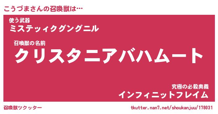 | ファンタジー風あだ名 | 『コウフェル』『エターナルコウヅマー』 |