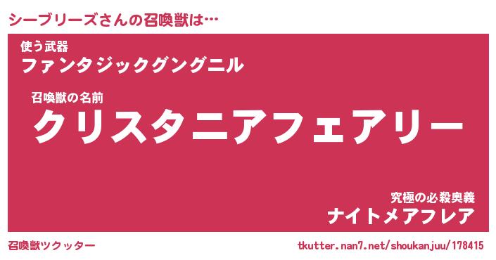 | ファンタジー風あだ名 | 『シーフェル』『ファントムシース』 |