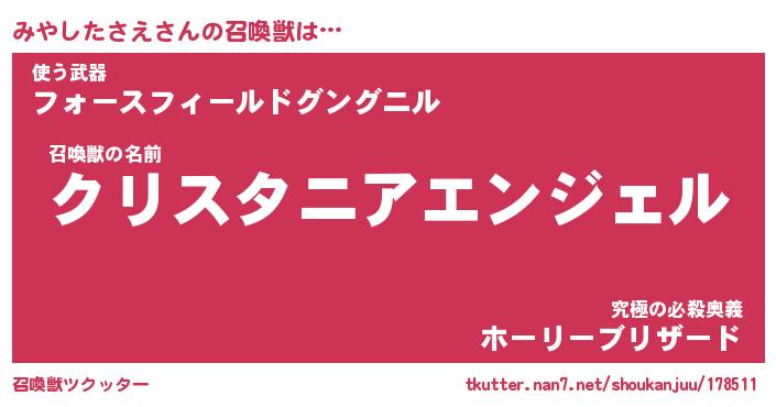 | ヘコむあだ名 | 『みやにゅー』『なまこ酢』『みやを』 |