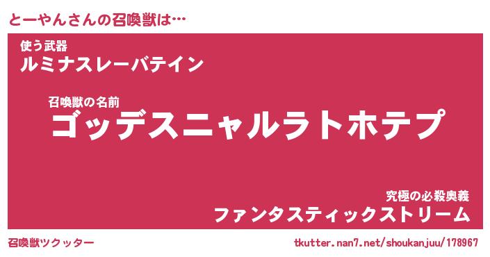| ファンタジー風あだ名 | 『トーフェル』『エターナルトーヤンー』 |