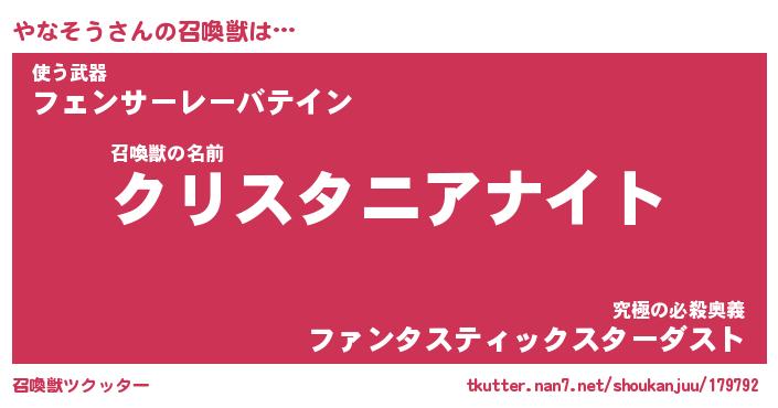 | ファンタジー風あだ名 | 『ヤナフェル』『エターナルヤナソウー』 |