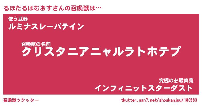 | 胡散臭い通販商品みたいなあだ名 | 『億万長者になれる霊験あらたかなお札…その名も「るほたるはむあす」』 |