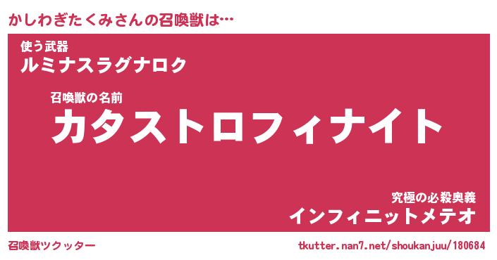 | 伝説のあだ名 | 『封印されし傭兵かしわぎたくみ』 |