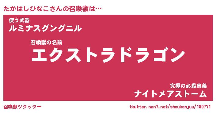 | 伝説のあだ名 | 『伝説の竜騎士たかはしひなこ』 |