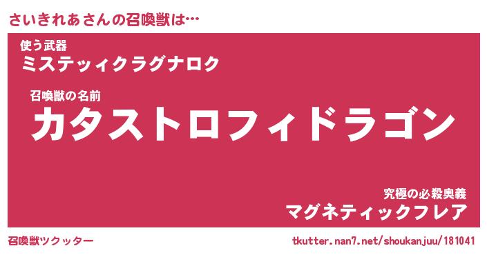 | 伝説のあだ名 | 『封印されし竜騎士さいきれあ』 |