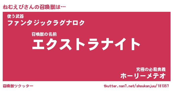 | ヒーロー風カッコイイあだ名 | 『スーパーネムエビ』『黄金騎士ネム』 |