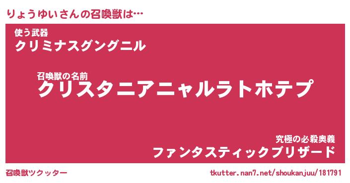 | ファンタジー風あだ名 | 『リョフェル』『エターナルリョウユイー』 |