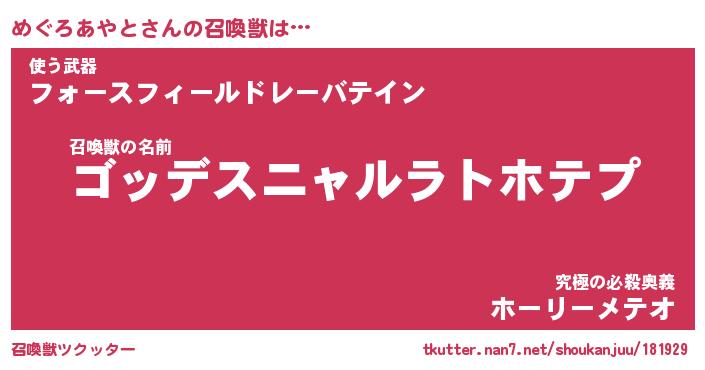 | 伝説のあだ名 | 『不死鳥のスナイパーめぐろあやと』 |