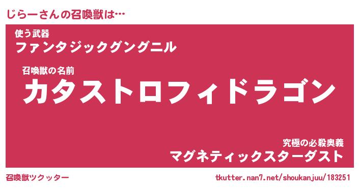 | 伝説のあだ名 | 『封印されし竜騎士じらー』 |
