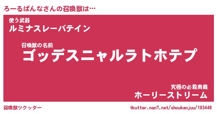 | 胡散臭い通販商品みたいなあだ名 | 『モテモテ間違いなし霊験あらたかなお札…その名も「ろーるぱんな」』 |