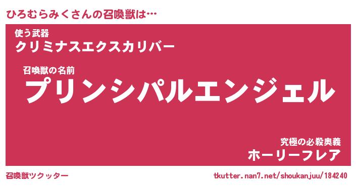 | 女子向けラノベタイトル風あだ名 | 『ひろむらみく姫と円卓の騎士』 |