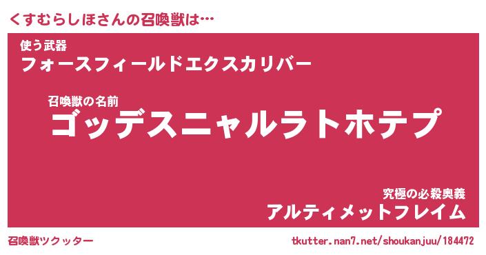 | 伝説のあだ名 | 『不死鳥のスナイパーくすむらしほ』 |