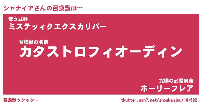 | ヒーロー風カッコイイあだ名 | 『スーパーシャナイア』『幻影騎士シャ』 |