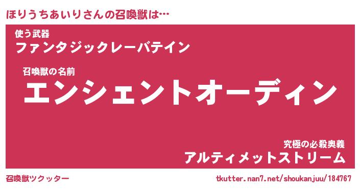 | 恥ずかしいあだ名 | 『プリティーほりうちあいり』『ほりちん』 |